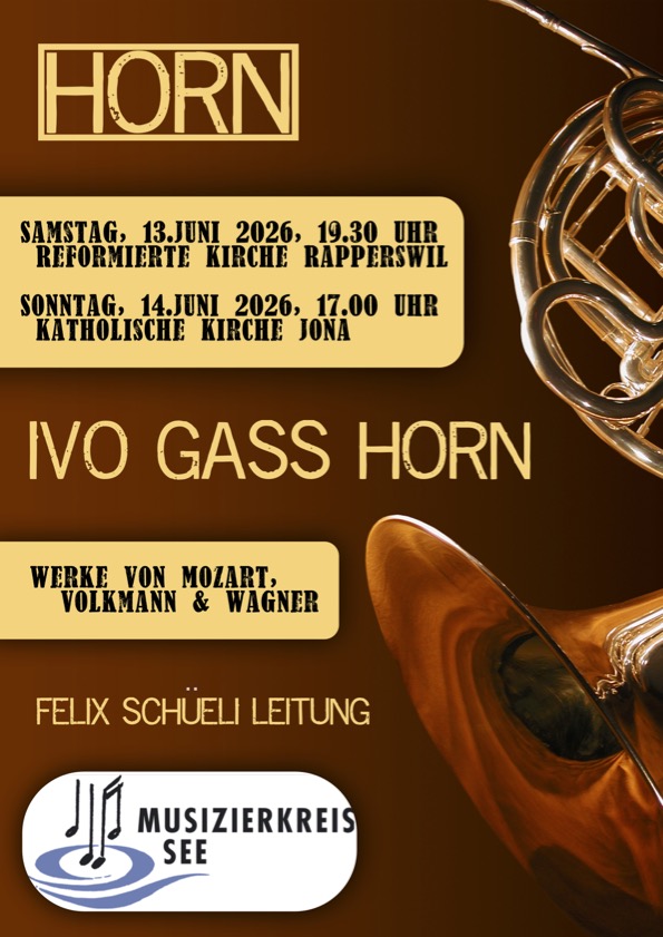 aufzuschwingen vermochten. Wir sind glücklich, dass wir mit Ivo Gass einen der renommiertesten Hornisten für unsere Konzerte gewinnen konnten. Er wurde bereits mit 21 Jahren Solohornist der Münchner Philharmoniker und ist zurzeit in derselben Funktion im Tonhalle Orchester Zürich sowie beim Lucerne Festival Orchestra tätig.